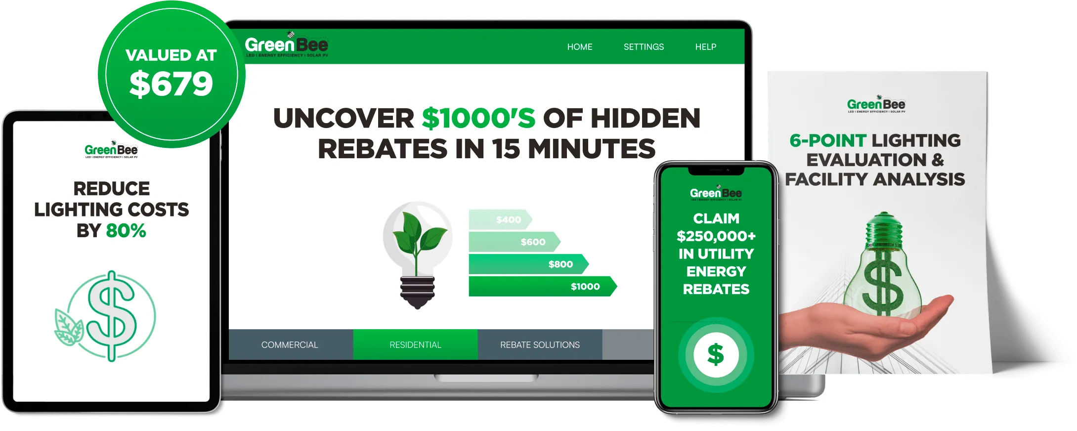 In just 15 minutes we’ll find you $1,000s of rebates and reveal how easy it is to claim them – through lighting, EV charging stations, solar installations and more!